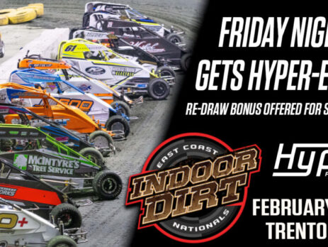 Friday Night Action at East Coast Indoor Dirt Nationals Gets Extra Hyper-ed Up Trenton, NJ – Friday night’s February 20 preliminary action at Trenton’s CURE Insurance Arena for the East Coast Indoor Dirt Nationals will create plenty of stress for the 95 registered drivers from 12 states seeking one of just 24 starting spots in Saturday, February 21’s A-Main event. Hyper Racing, however, has added even more excitement by posting an additional incentive to race harder on the first night of the...